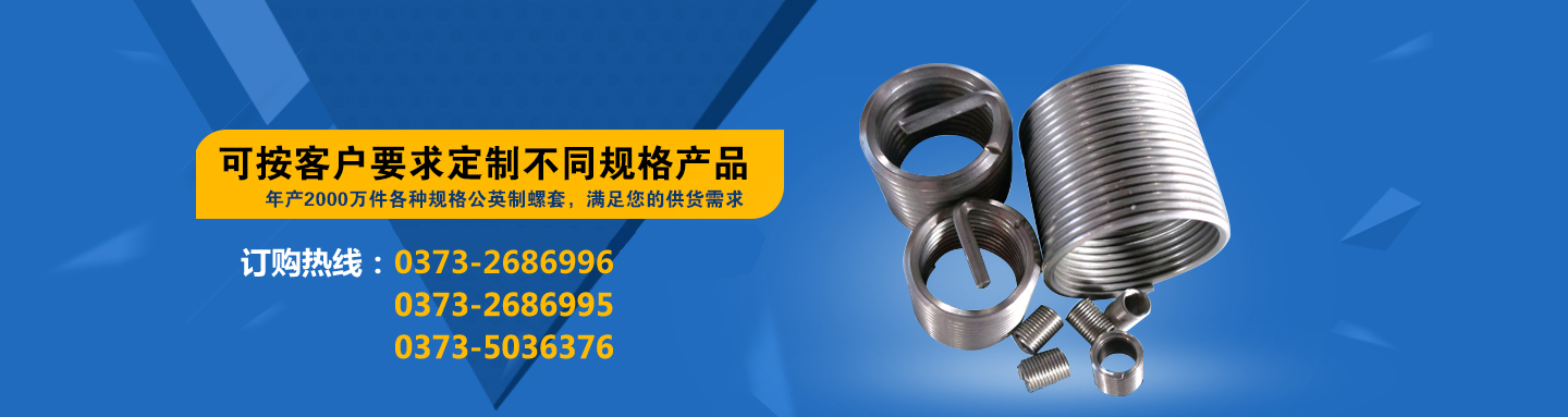 產(chǎn)品名稱:鋼絲螺套產(chǎn)品介紹:1、鋼絲螺套在自由狀態(tài)下外徑大于基體螺紋孔內(nèi)徑,依靠自身的彈力可牢固的固定在基體螺紋孔中,不需要采取特殊的鎖緊方式,拆裝方便,便于修復(fù)。同時(shí)具有結(jié)構(gòu)緊湊、體積小、重量輕的特點(diǎn); 2、鋼絲螺套由冷軋不銹鋼絲繞制而成,強(qiáng)度高,表面質(zhì)量好,耐磨性好,對(duì)基體螺紋有保護(hù)作用,可多次反復(fù)拆卸不損壞基體螺紋孔。 3、鋼絲螺套裝入螺紋底孔后,在螺釘與安.. [詳情]產(chǎn)品名稱:鋼絲螺套產(chǎn)品介紹:1、鋼絲螺套在自由狀態(tài)下外徑大于基體螺紋孔內(nèi)徑,依靠自身的彈力可牢固的固定在基體螺紋孔中,不需要采取特殊的鎖緊方式,拆裝方便,便于修復(fù)。同時(shí)具有結(jié)構(gòu)緊湊、體積小、重量輕的特點(diǎn); 2、鋼絲螺套由冷軋不銹鋼絲繞制而成,強(qiáng)度高,表面質(zhì)量好,耐磨性好,對(duì)基體螺紋有保護(hù)作用,可多次反復(fù)拆卸不損壞基體螺紋孔。 3、鋼絲螺套裝入螺紋底孔后,在螺釘與安.. [詳情]產(chǎn)品名稱:國(guó)標(biāo)盲孔用鋼絲螺套產(chǎn)品介紹:.. [詳情]
